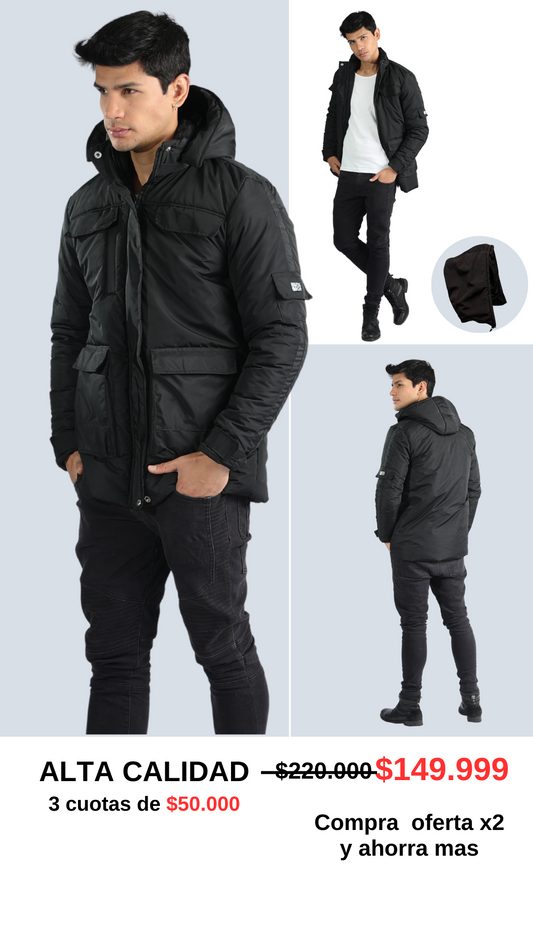 PARKA DE HOMBRE TERMICA 5 BOLSILLOS - Negro