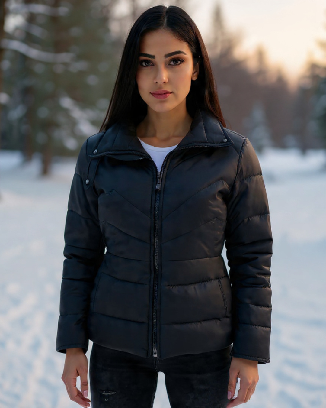 CHAQUETA CUELLO ALTO Y BOLSILLOS INVISIBLES CON CREMALLERA