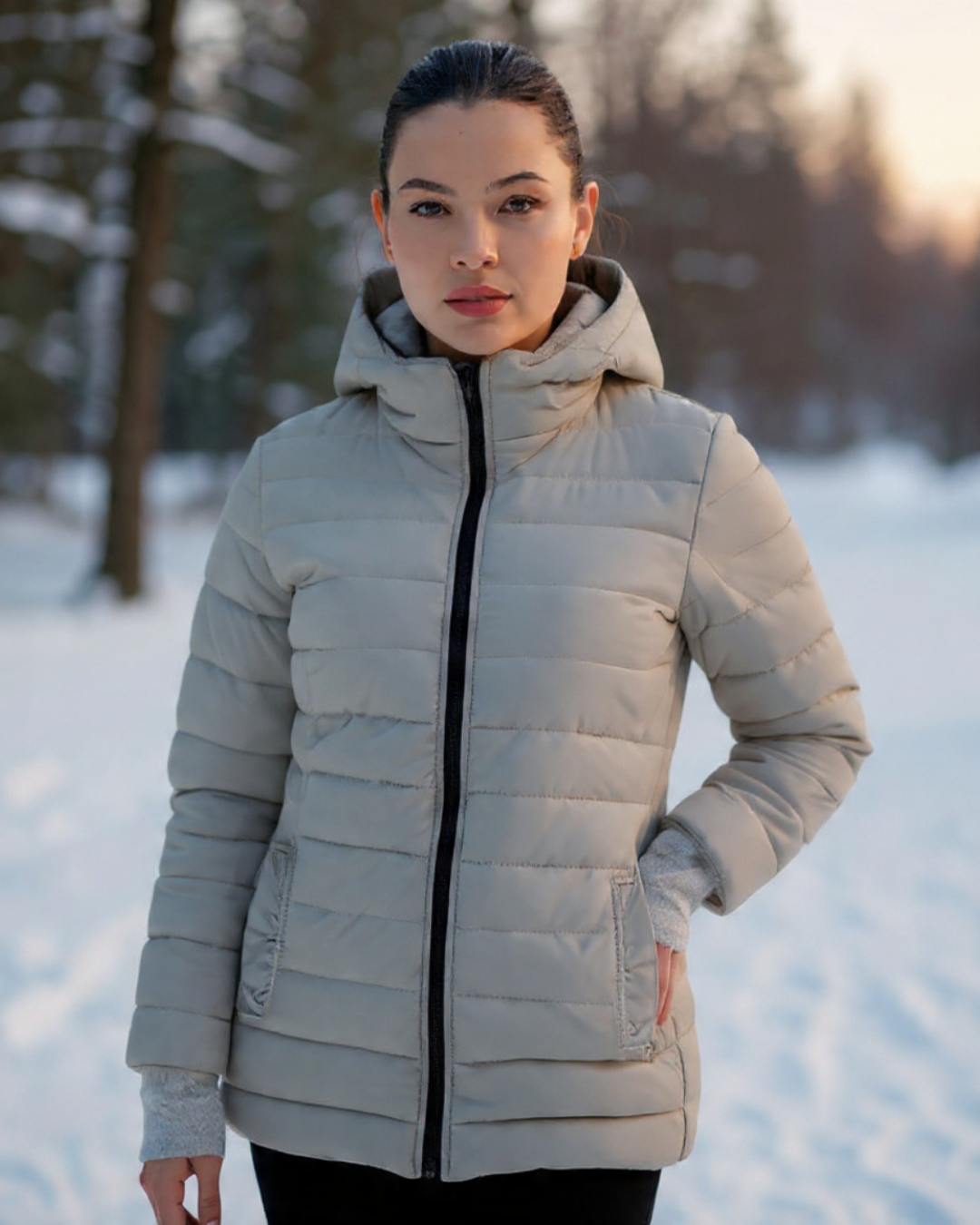 Su diseño incluye guantes ajustables, permitiéndote usarlos solo cuando los necesites, brindando mayor versatilidad y calidez. Ideal para complementar cualquier outfit, este gabán realza tu figura con un corte moderno y elegante.