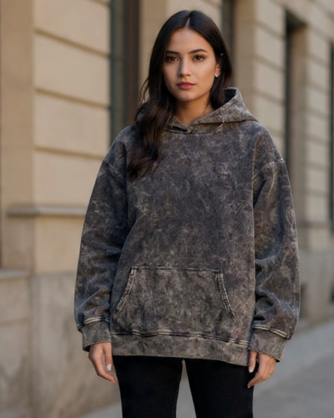 Buzo de capota oversize en algodón peruano 100% (320g) con textura french terry. Acabado acid wash para un estilo moderno y único. Cómodo, suave y de alta calidad.